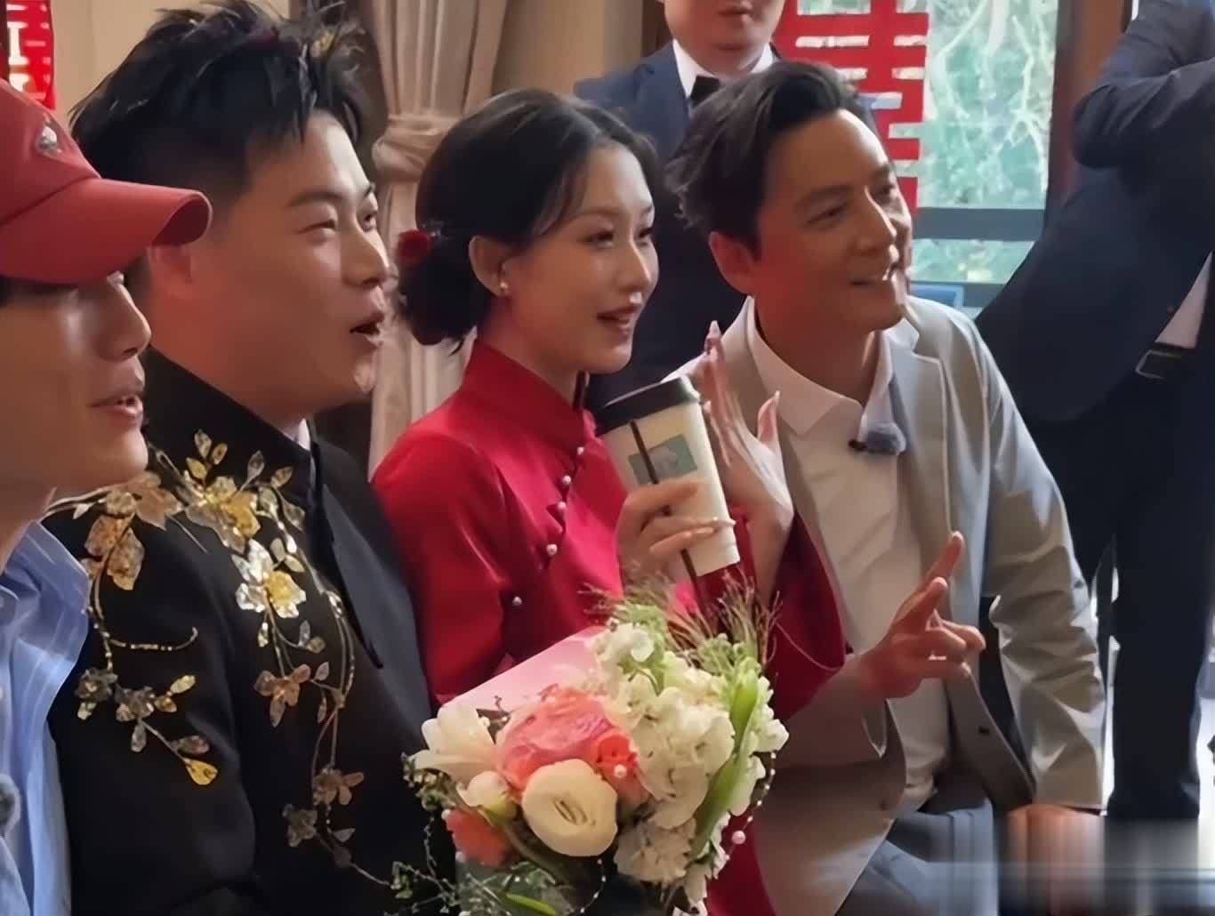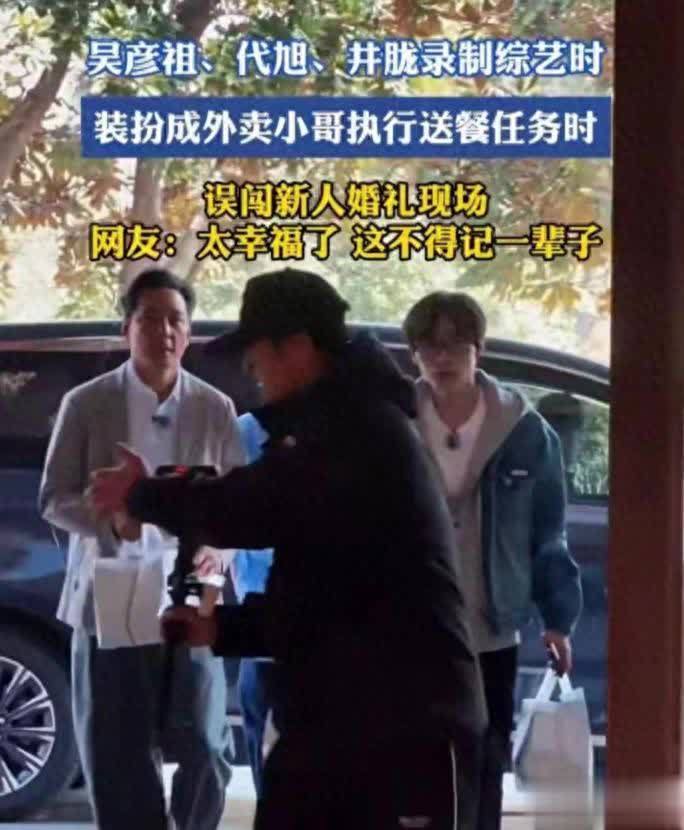 开门的是新郎,想必双方都未曾料到,一方在送外卖录节目,另一方正举行婚礼,这般运气实属难得。