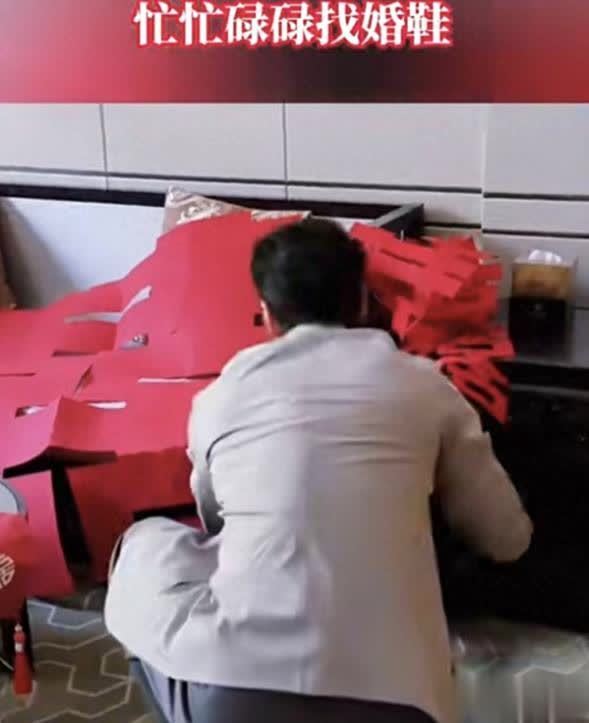 找婚鞋时毫无架子,全程态度亲和,跪地认真找鞋,仿若好友结婚。